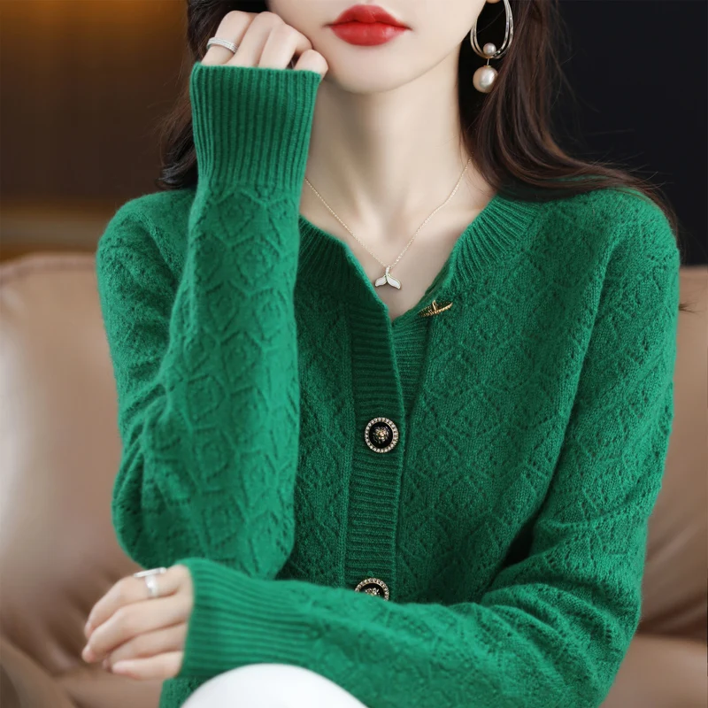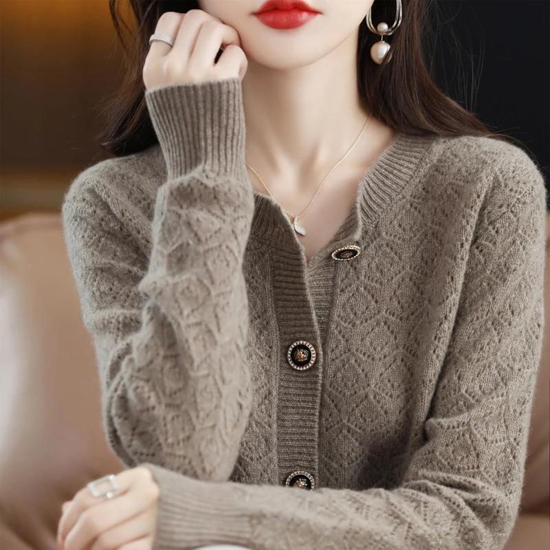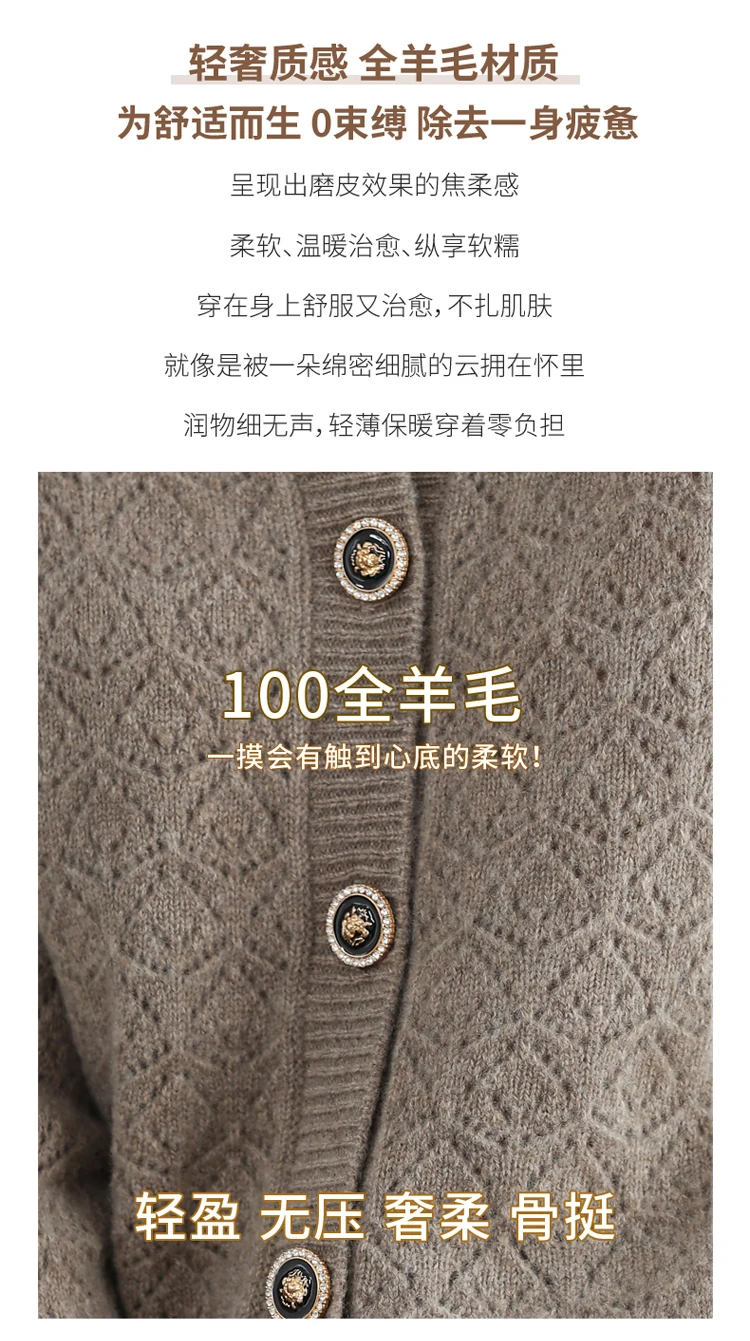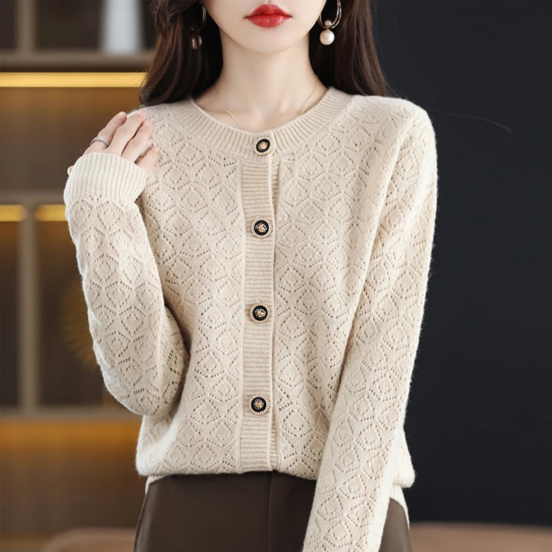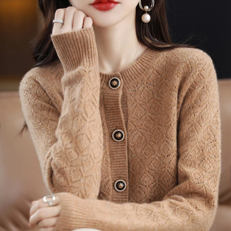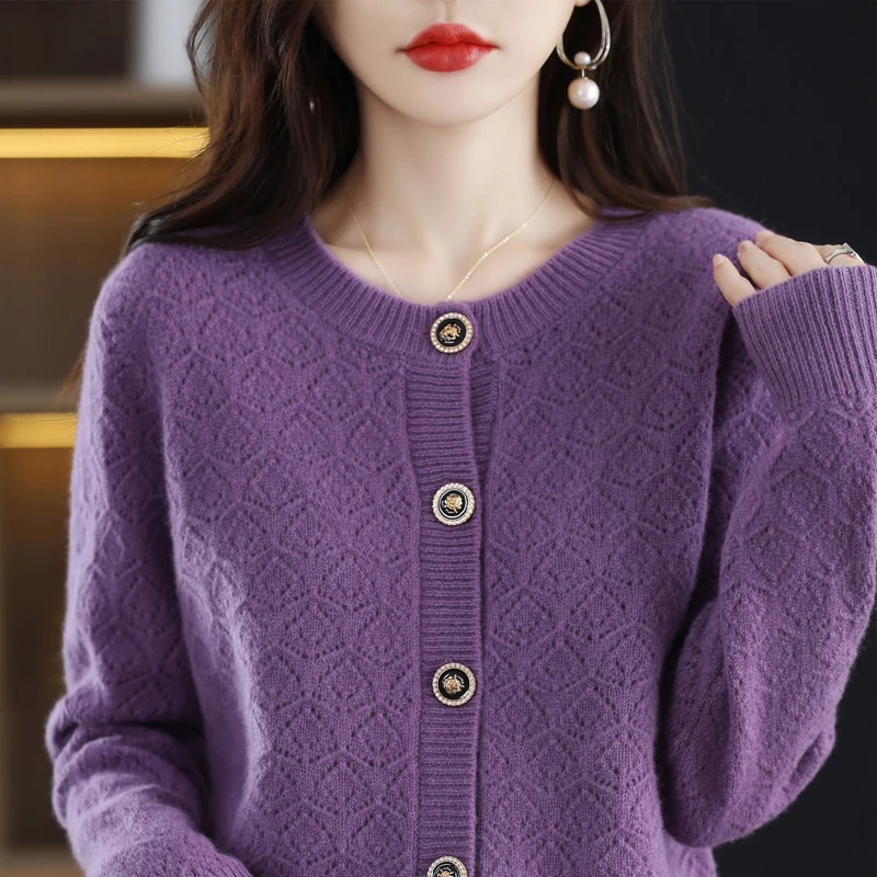 «Autumn And Winter New Pure Wool Women's Cardigan Round Neck Hollowed Out 100% Wool Korean Loose Sweater Jacquard Sweater Knit Ca» по лучшей цене на рынке! Всего за 57$ (5415рублей)