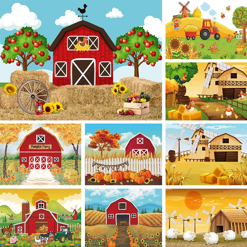 vHsVNfVbHere you can buy Autumn Harvest Rural Farm Backdrop Kids Birthday Party Photo Background Fall Pumpkin Country Red Barn Door Haystack Decor Banner with free delivery to your post office.