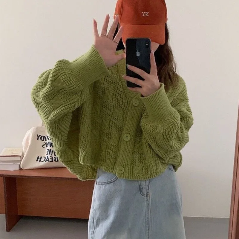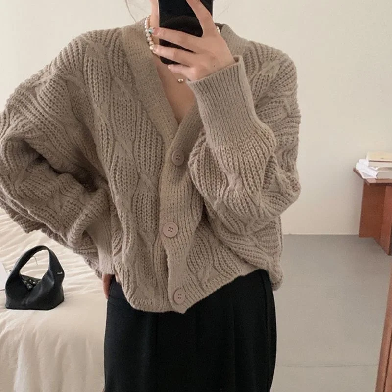 AFIuANJmЗдесь вы сможете купить Autumn Knitted Cardigan Spring Button-down Sweaters Fashion Solid Color Sense of Design Loose Coat Simplicity All-match Lady Top с бесплатной доставкой до вашего почтового отделения.