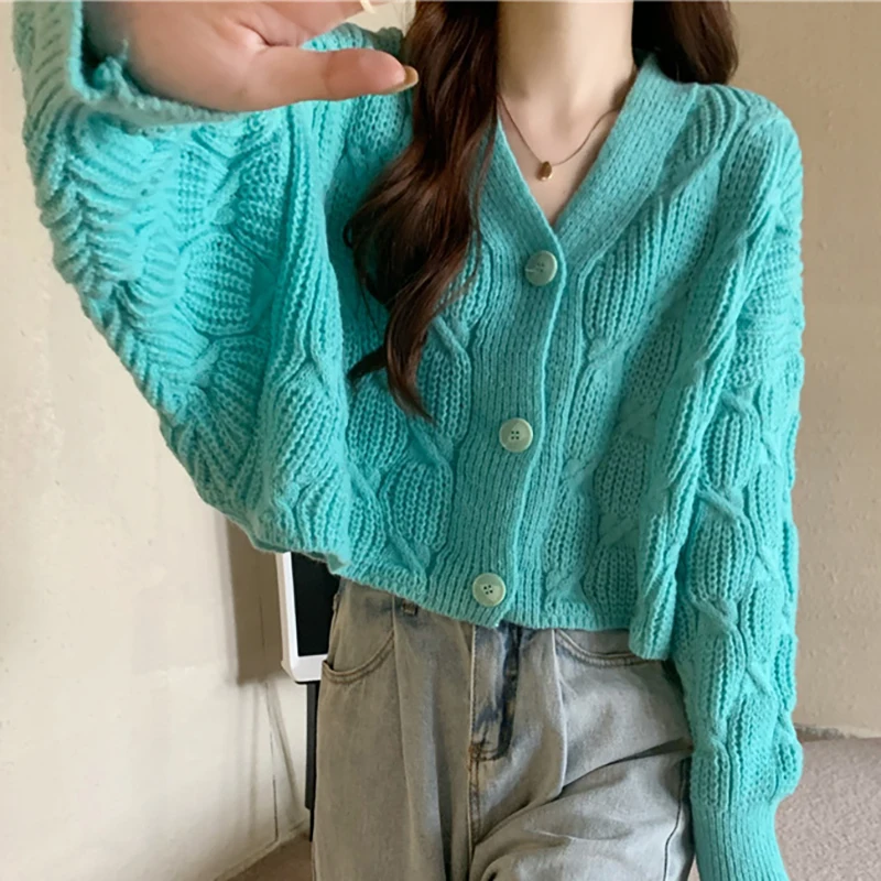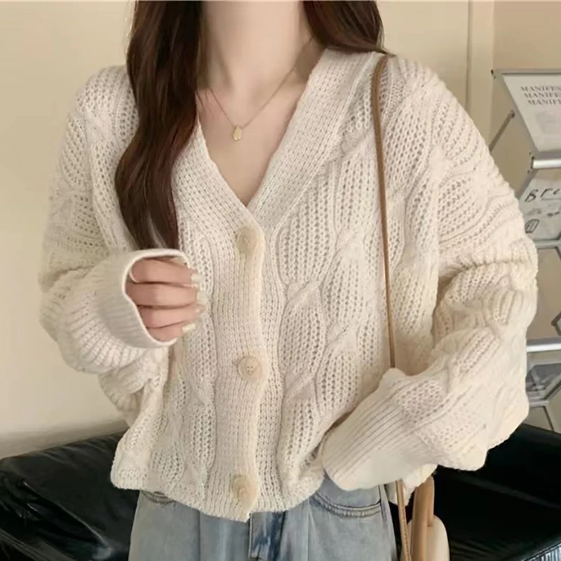 Autumn Knitted Cardigan Spring Button-down Sweaters Fashion Solid Color Sense of Design Loose Coat Simplicity All-match Lady Top - Купить с бесплатной доставкой