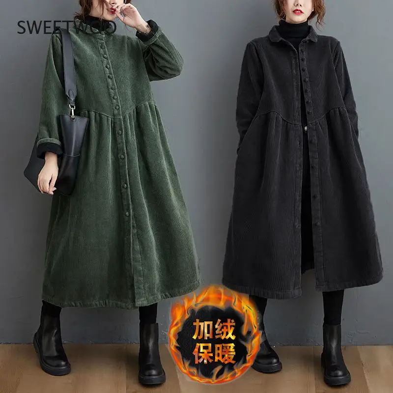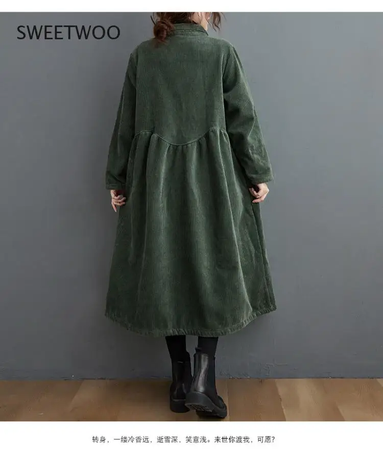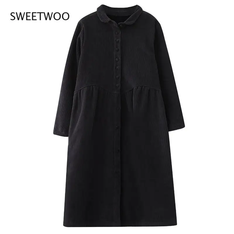 «Autumn Winter Fashion Corduroy Dress Womens Mid-length Vestidos Mujer 2021 Large Size Velvet Thick Loose Casual Cardigan Dresses» по лучшей цене на рынке! Всего за 22$ (2090рублей)