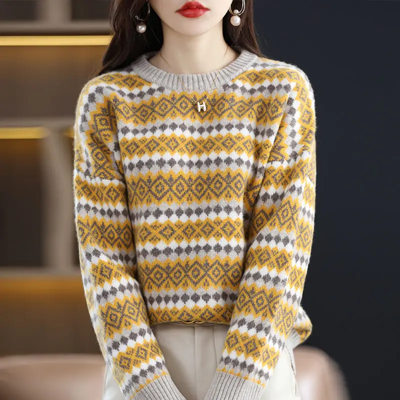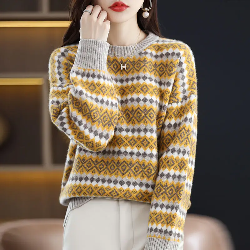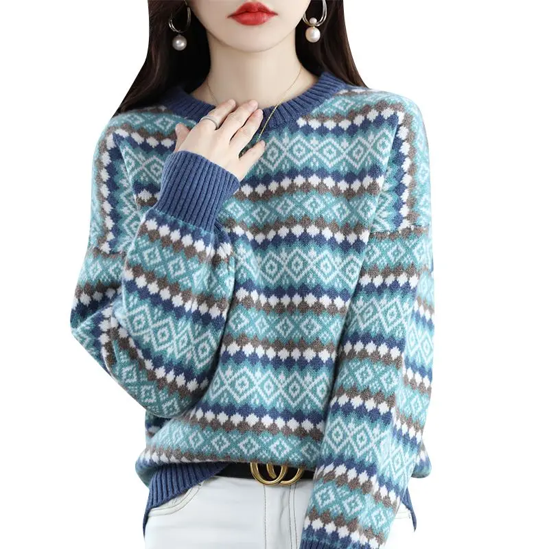 «Autumn Winter Geometric Folk Printed Knitted Sweaters Elegant O-Neck Long Sleeve Commuter Stylish Patchwork Korean Jumpers 2022» по лучшей цене на рынке! Всего за 18$ (1710рублей)
