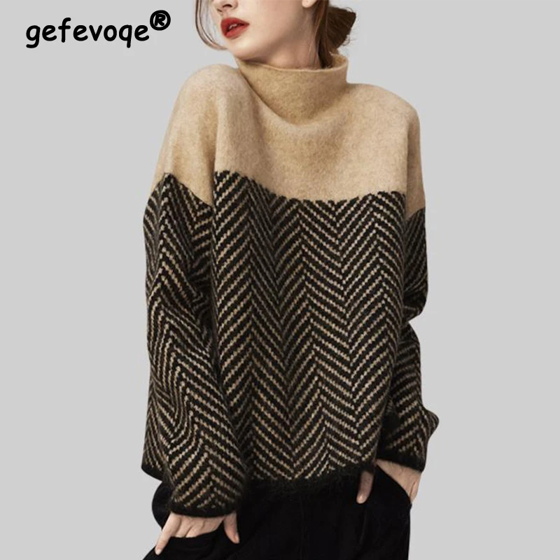 LVbPGBZUSДолго искали Autumn Winter High Collar Patchwork Jumper Casual Fashion Warm Sweater Ladies Loose All-match Knitting Bottoming Pullover Top, но не могли найти? Предоставляем вашему вниманию Autumn Winter High Collar Patchwork Jumper Casual Fashion Warm Sweater Ladies Loose All-match Knitting Bottoming Pullover Top по лучшей цене на рынке!