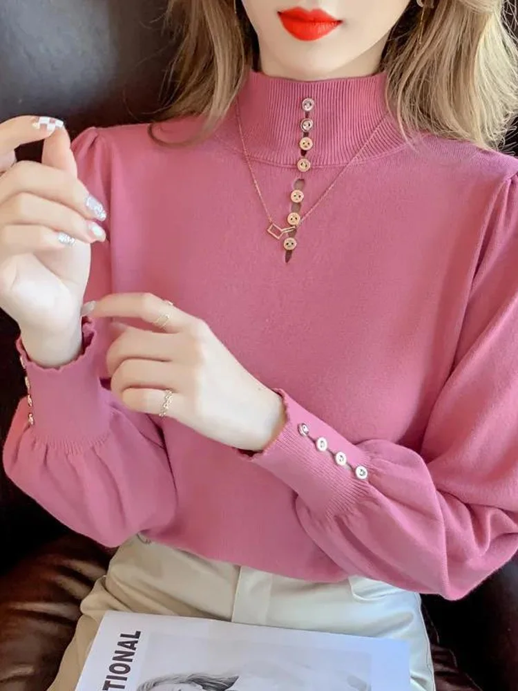 «Autumn Winter Personality Button Knitting Bottoming Shirt Interior Lapping New Long Sleeve Turtleneck Solid Color All-match Top» по лучшей цене на рынке! Всего за 18$ (1710рублей)