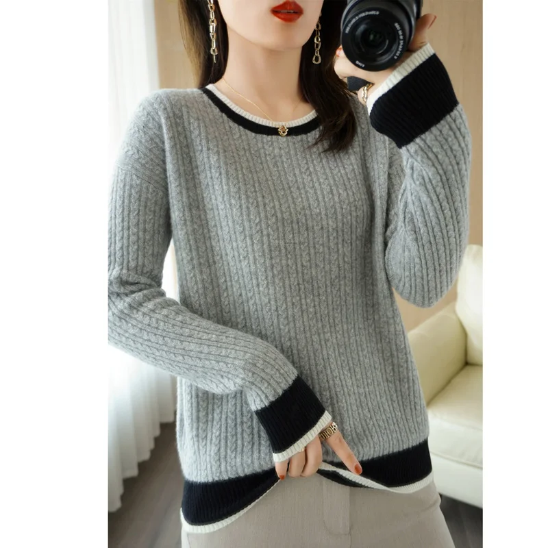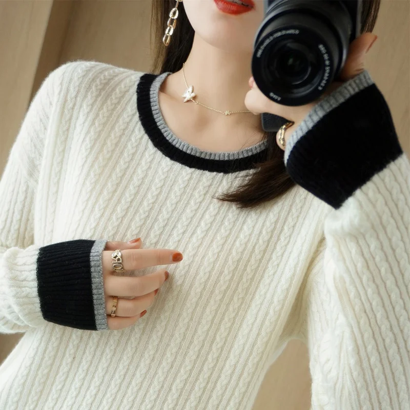 AVPOHEnwJДолго искали Autumn Winter Pure Wool Sweater Women's Round Neck Small Twist Color Matching Sweater Knitted Bottoming Shirt Beautiful Pullover, но не могли найти? Предоставляем вашему вниманию Autumn Winter Pure Wool Sweater Women's Round Neck Small Twist Color Matching Sweater Knitted Bottoming Shirt Beautiful Pullover по лучшей цене на рынке!