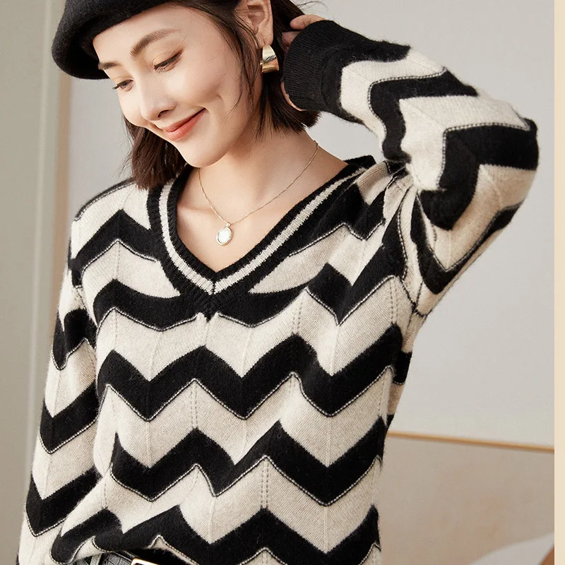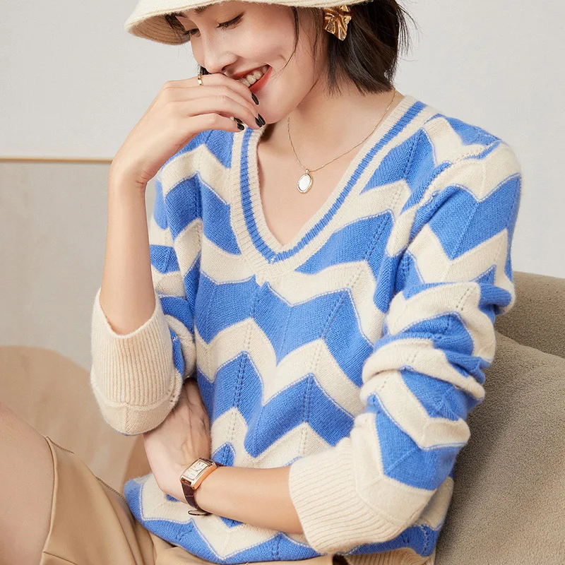 TmRBttTjДолго искали Autumn and Winter 2022 New Women's V-neck Color Contrast Loose Pullover Korean Long Sleeve Sweater Knitted Wool Undercoat, но не могли найти? Предоставляем вашему вниманию Autumn and Winter 2022 New Women's V-neck Color Contrast Loose Pullover Korean Long Sleeve Sweater Knitted Wool Undercoat по лучшей цене на рынке!