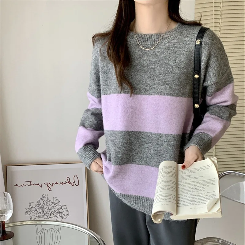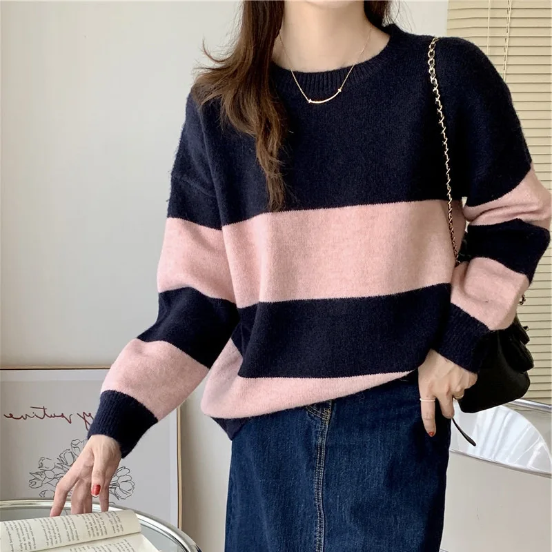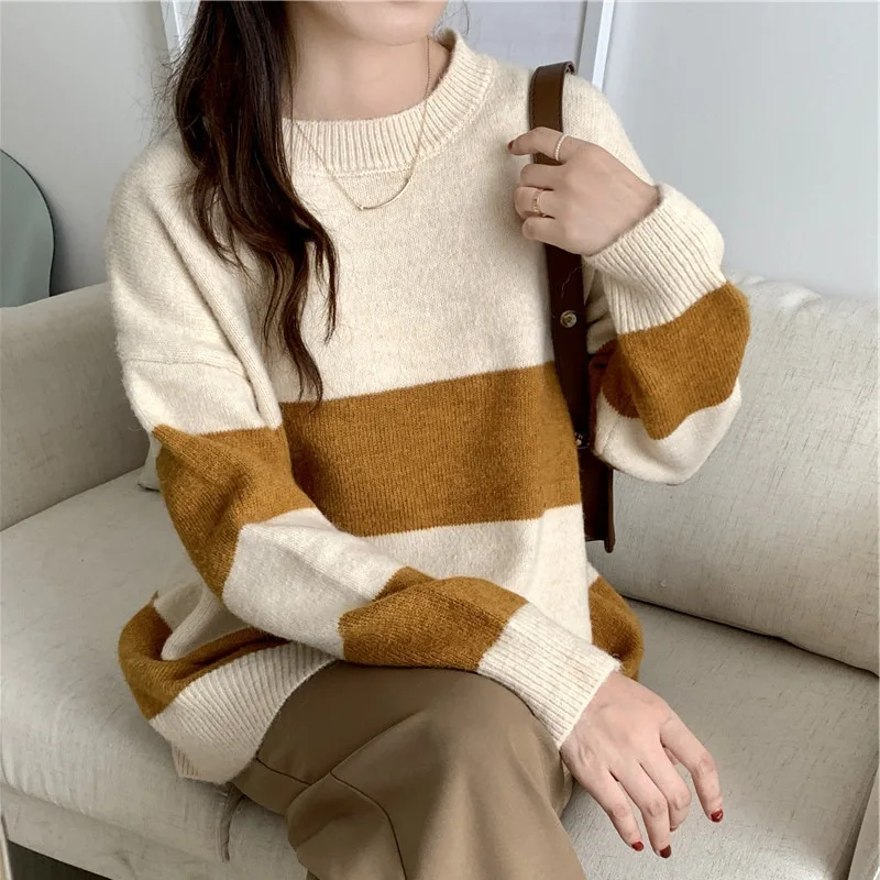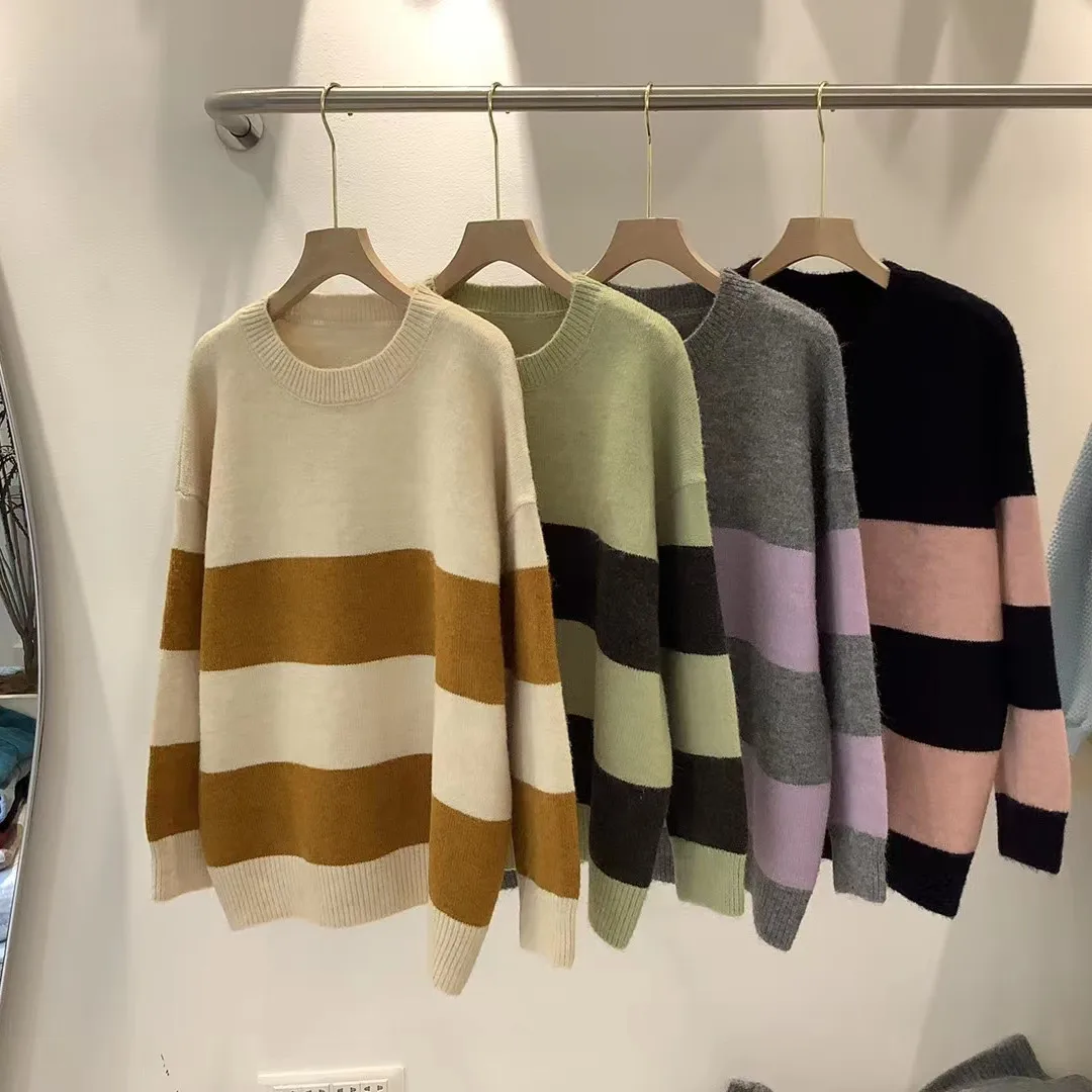 vTxBNKUVKoДолго искали Autumn and Winter New Vintage Color Contrast Stripe Round Neck Sweater Women's Loose Foreign Soft Waxy Sweater Top, но не могли найти? Предоставляем вашему вниманию Autumn and Winter New Vintage Color Contrast Stripe Round Neck Sweater Women's Loose Foreign Soft Waxy Sweater Top по лучшей цене на рынке!
