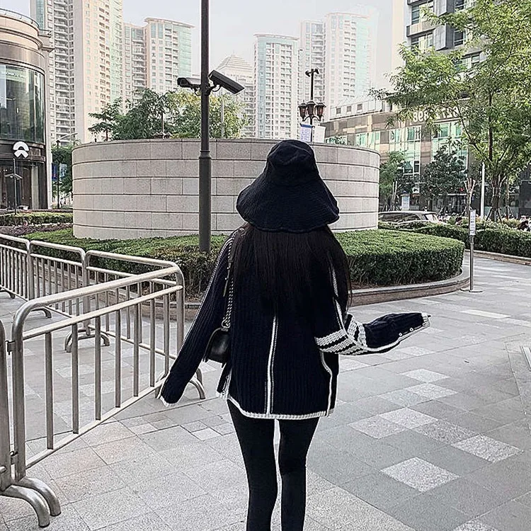 «Autumn and winter net red TB navy blue sweater women's white strip stitching knitted lapel cardigan jacket lazy and versatile» по лучшей цене на рынке! Всего за 41$ (3895рублей)