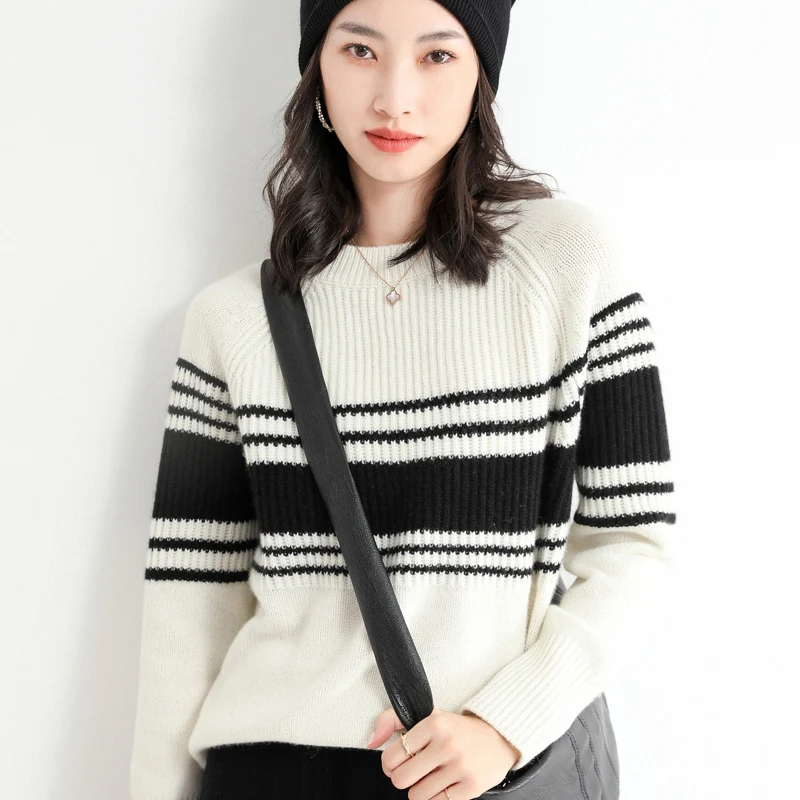 «Autumn/Winter 2022 New Style Middle Stripe Long Sleeve Wool Sweater Versatile Women's Loose Round Neck Temperament Sweater Top» по лучшей цене на рынке! Всего за 21$ (1995рублей)
