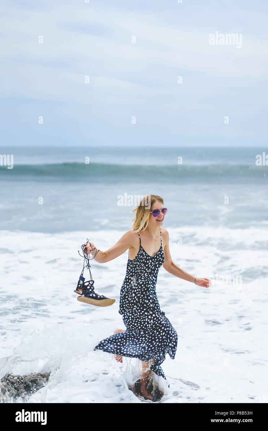 fille fun dans la salle de bains