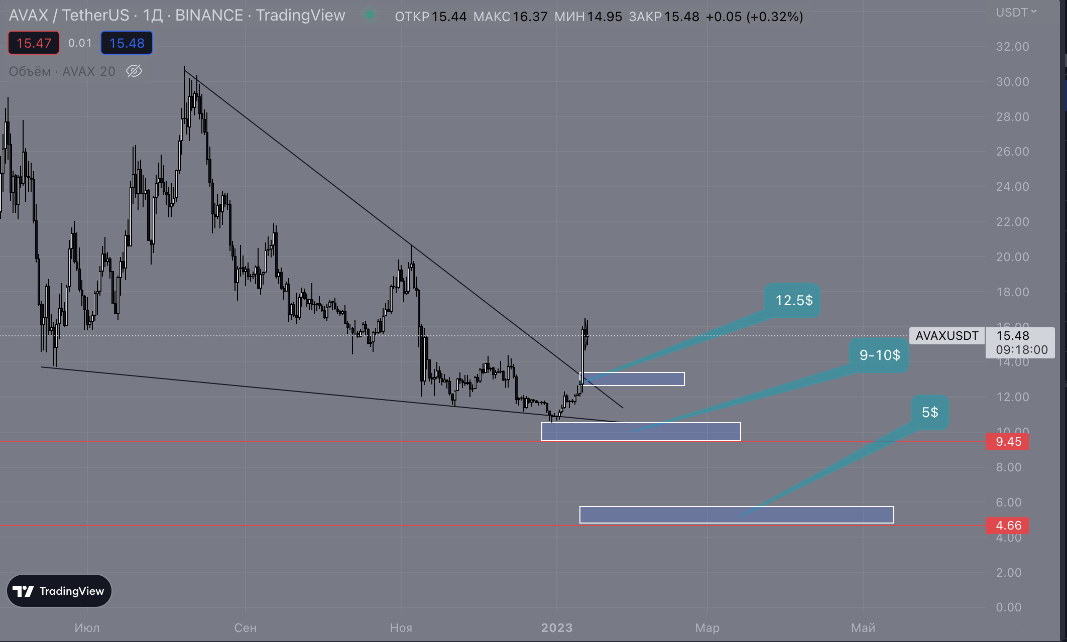 Важные ценовые уровни $9-15 и $3-5