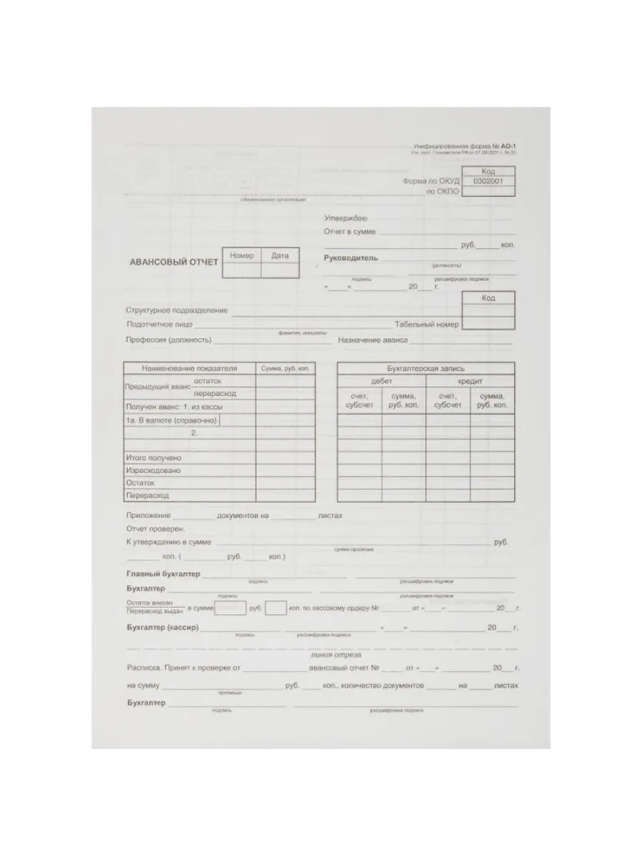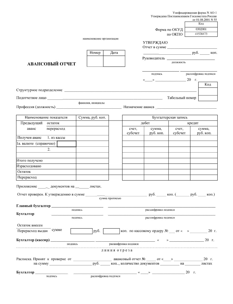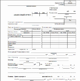 Авансовый отчет таблица