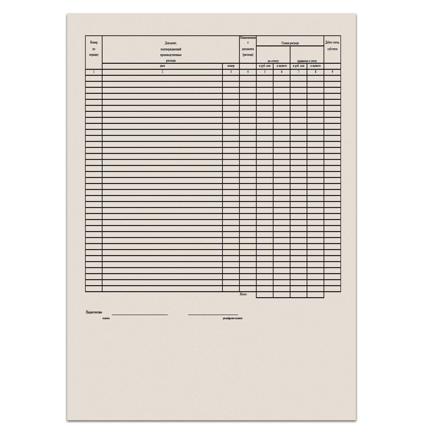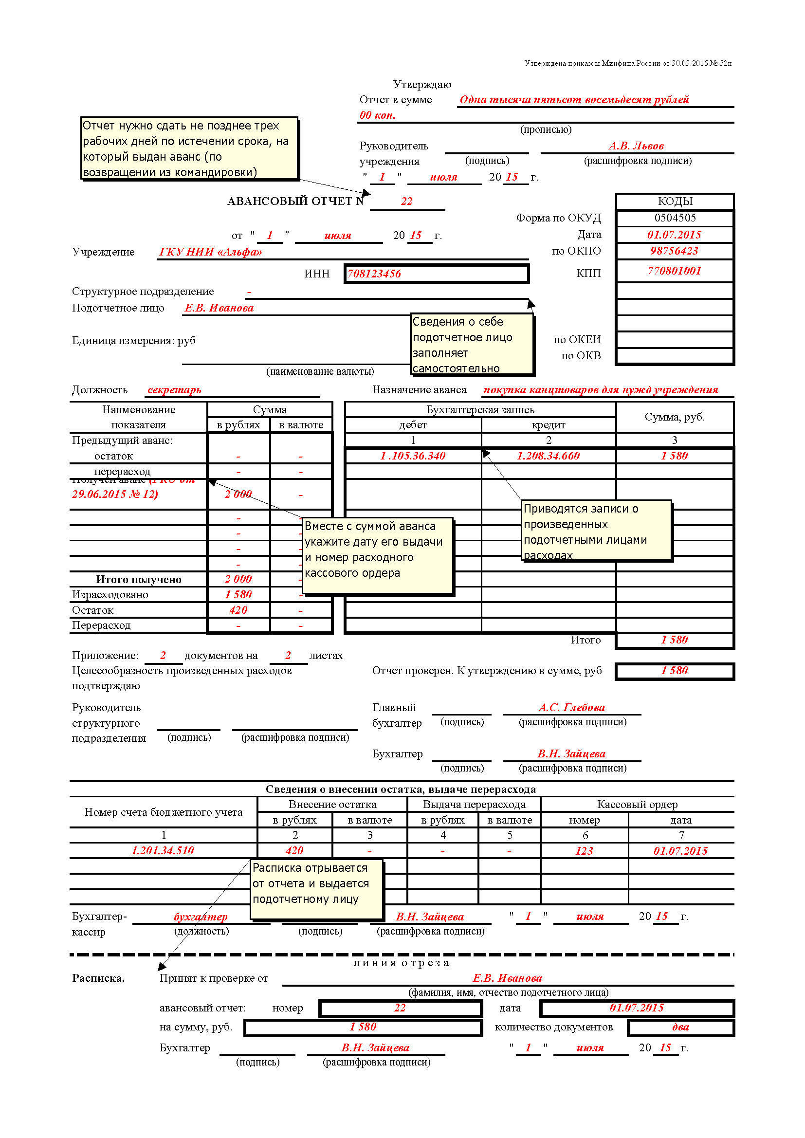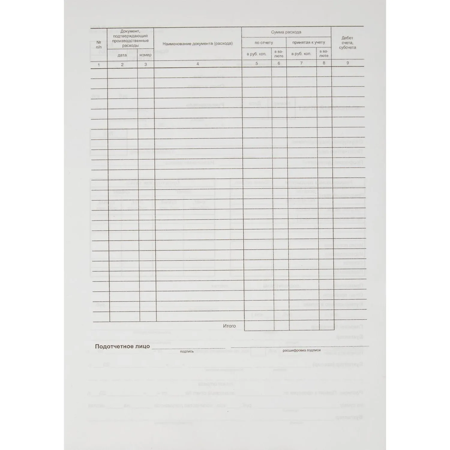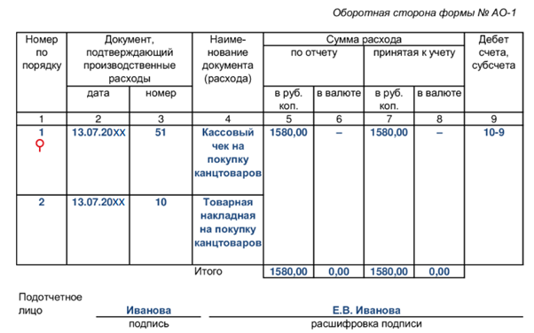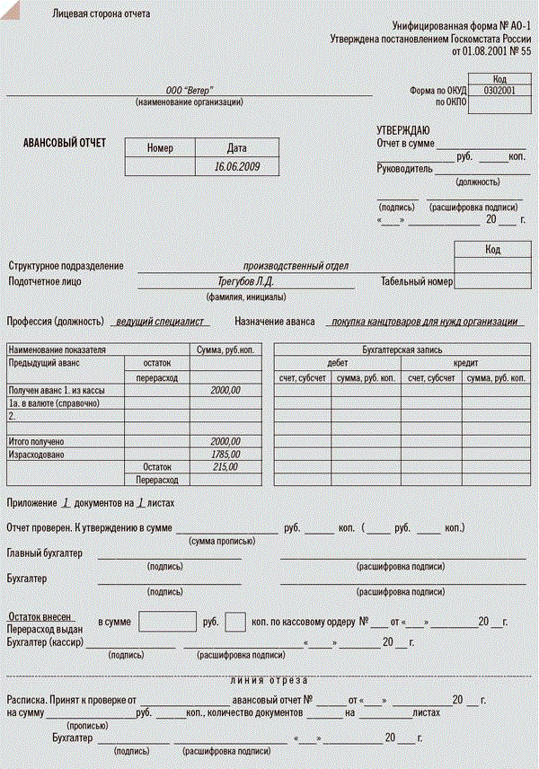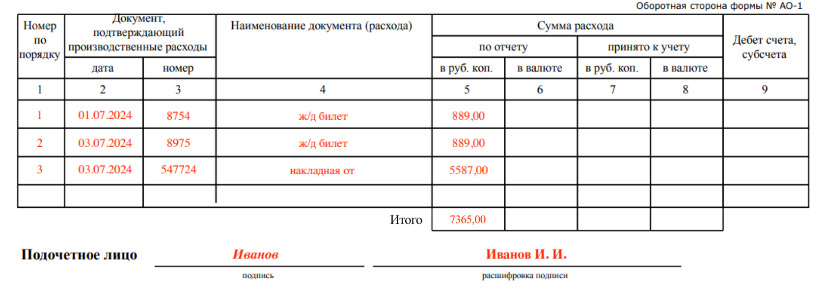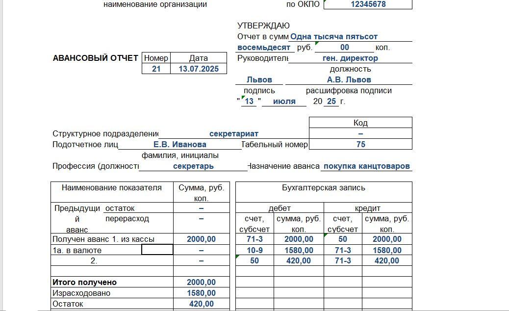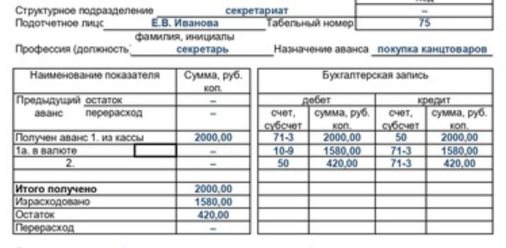 Авансовый отчет таблица 138 фото