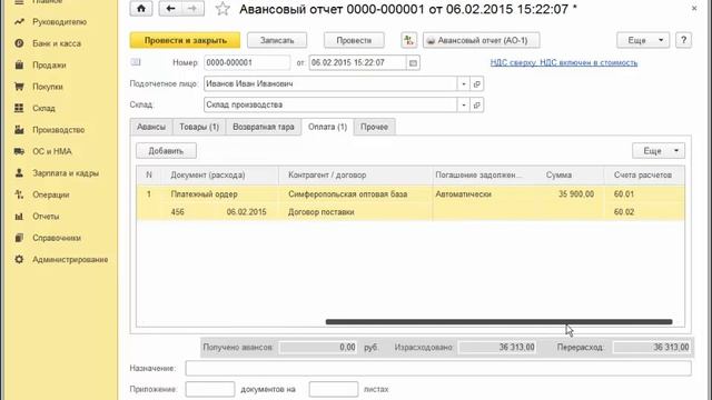 Авансовый в 1с 114 фото