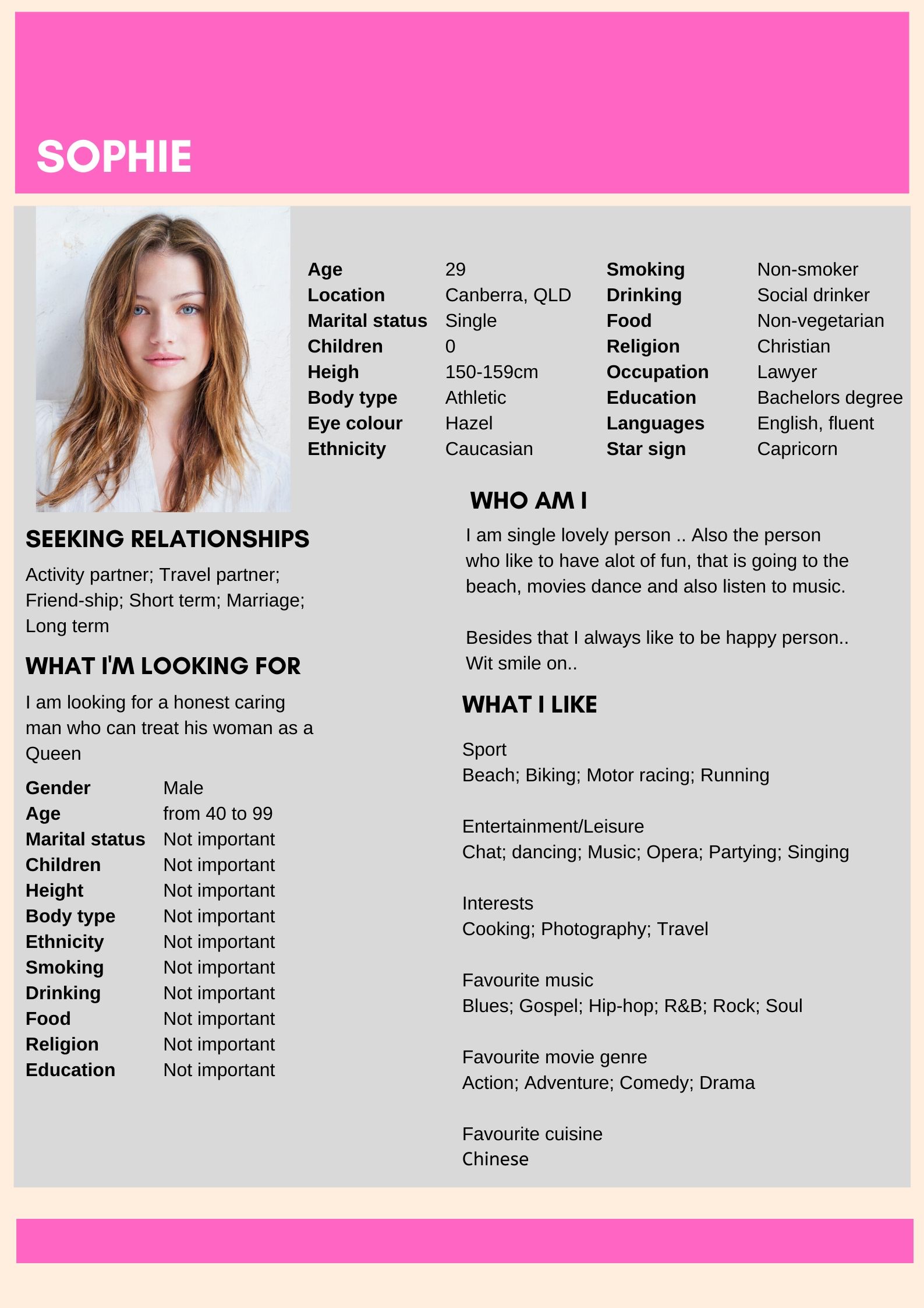 Female Dating Site Profile