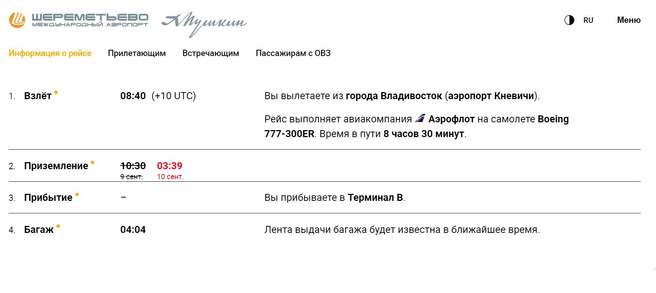 Авиарейс владивосток петербург