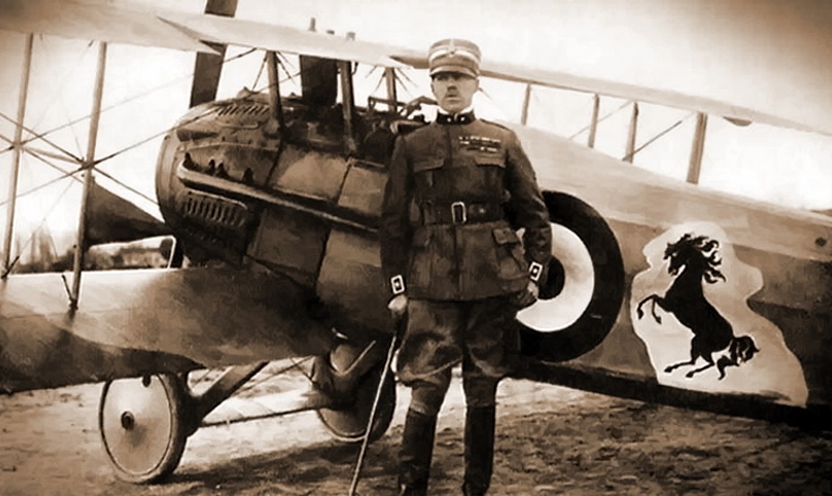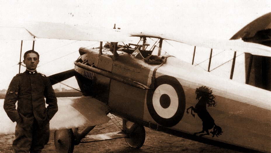 С октября 1916 года ас летал на более современном «Ньюпоре»-17 – первом самолёте этого типа, который получила эскадрилья. Именно на этом истребителе впервые была нанесена его личная эмблема – чёрный вздыбленный конь. Она стала данью уважения Королевскому Пьемонтскому полку с его серебряным «Cheval animé», – «играющим конём» , – и в дальнейшем повторялась на всех персональных самолётах аса.