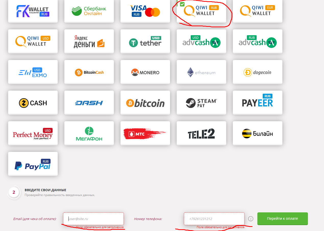 Оплачиваем через наш левый киви, вписываем ту же левую почту.
