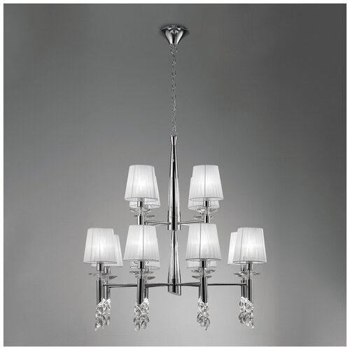 İspanyol MANTRA firmasının avizesi krom renkli metalden yapılmıştır. Beyaz organze abajurlar. Kristalden yapılmış dekoratif unsurlar. İki aydınlatma yönü: üst - E14 taban tipi, alt - G9 taban tipi İspanya'da üretilmiştir