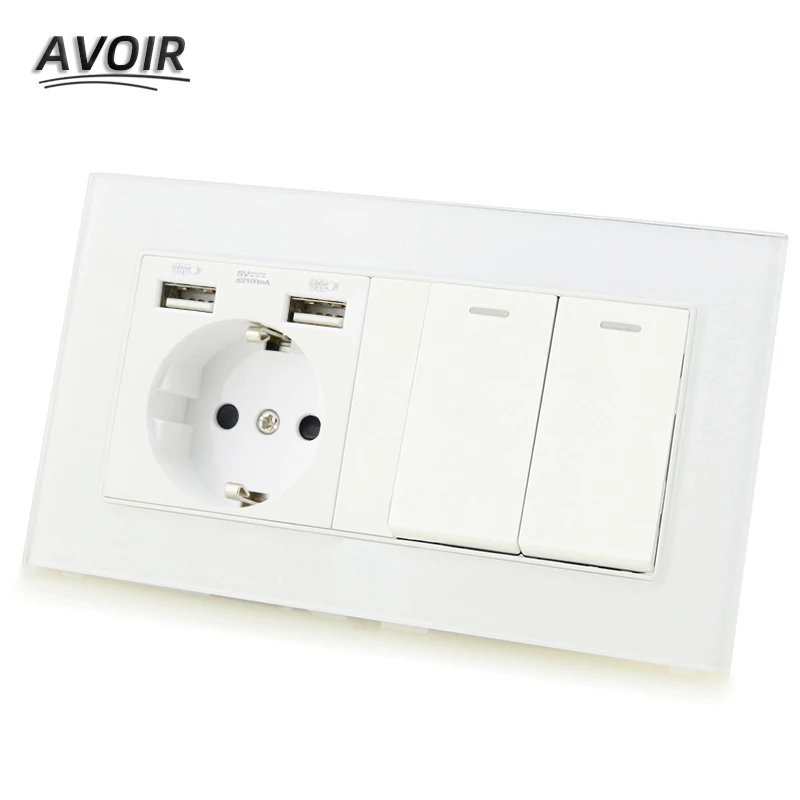 «Avoir DE EU RU Plug Power Double Socket Dual USB Charging Port 1 2 3 4 Gang Light Switch Electrical PC Outlet 146mm*86mm» по лучшей цене на рынке! Всего за 13$ (1235рублей)