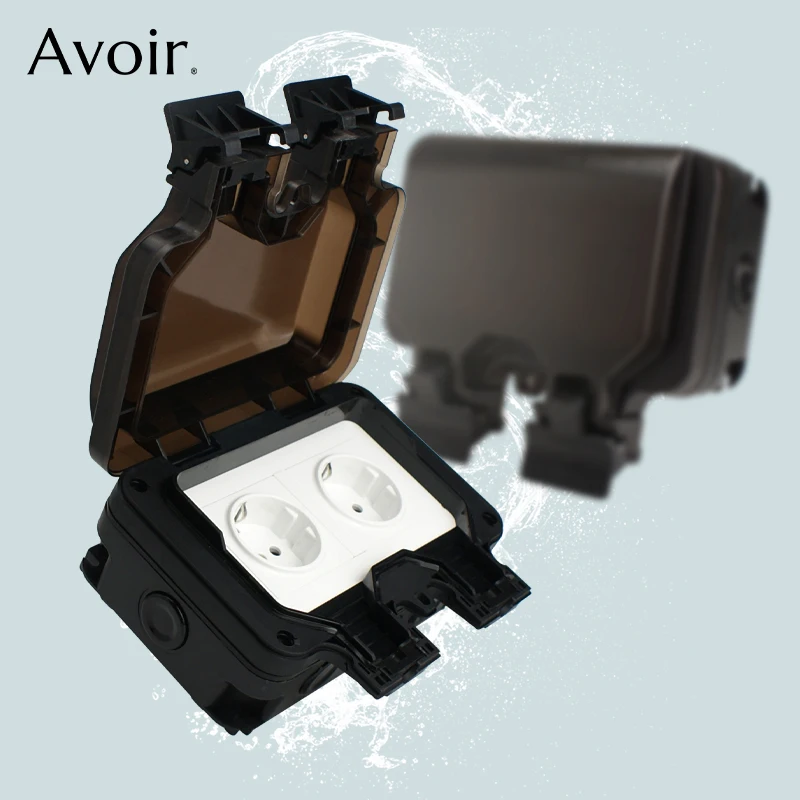 Avoir Wall Power Socket Universal Standard Plug IP66 Waterproof Box Black Outdoor Garden Electrical Outlet With Switch Indicator - Купить с бесплатной доставкой