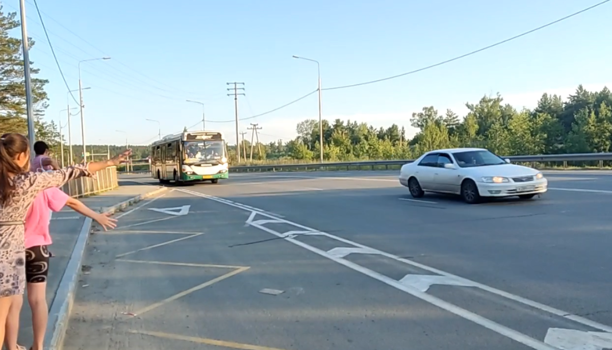 Автобусы проезжают мимо остановки