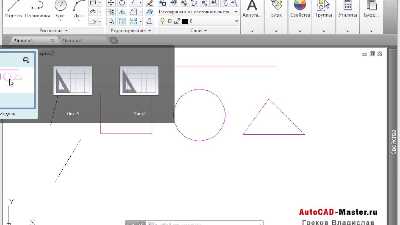 Автокад вкладка начало