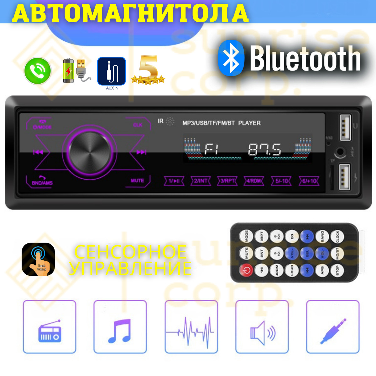 Автомагнитола 1 din bluetooth aux usb