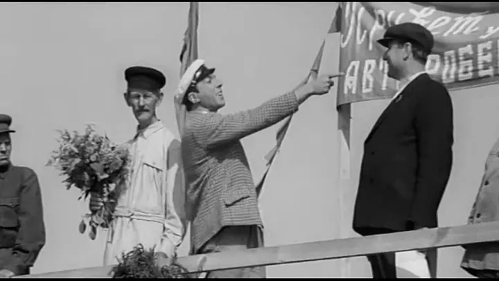 — Я рад, товарищи, — заявил Остап в ответной речи, — нарушить автомобильной сиреной патриархальную тишину города Удоева. Автомобиль, товарищи, не роскошь, а средство передвижения. Железный конь идет на смену крестьянской лошадке. Наладим серийное производство советских автомашин. Ударим Автопробегом по бездорожью и разгильдяйству. Я кончаю, товарищи. Предварительно закусив, мы продолжим наш далекий путь!"