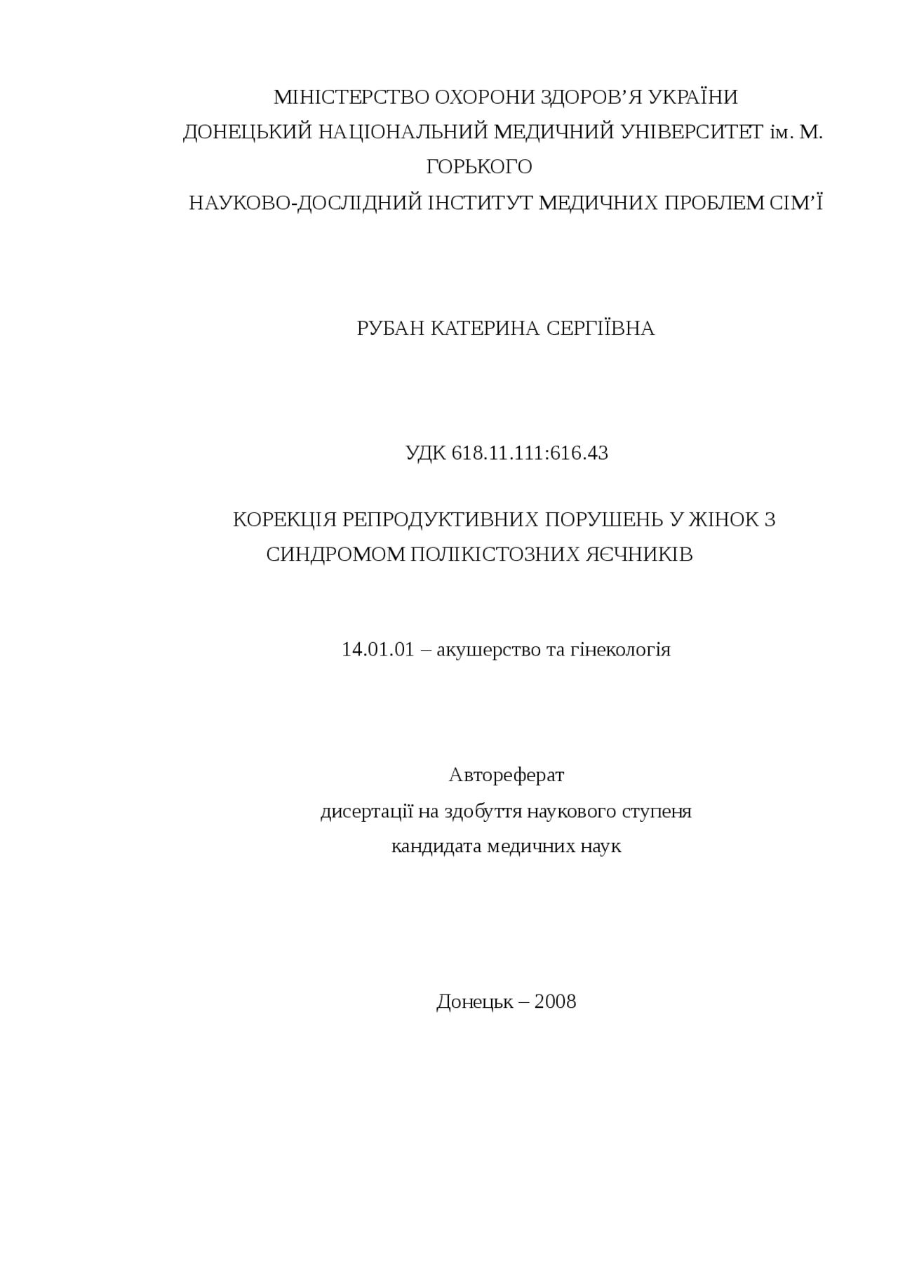 Автореферат На Тему Корекція Репродуктивних Порушень У Жінок З Синдромом Полікістозних Яєчників