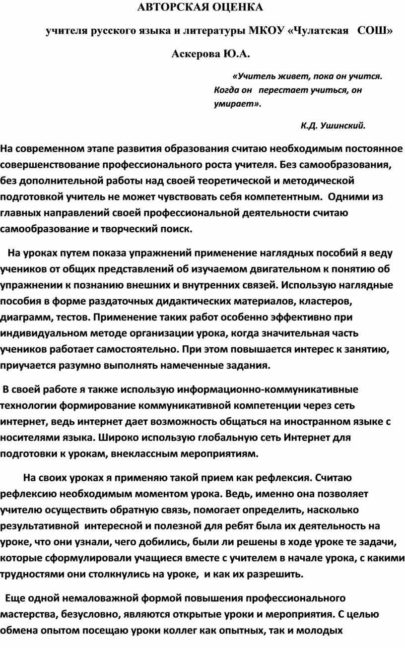 Авторская оценка содержания