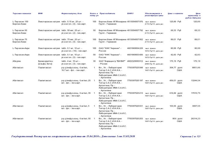 Торговые наименования лекарственных средств
