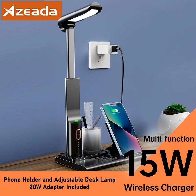 bGCIKRmgHere you can buy Azeada Multi-function 15W Wireless Charger Kit with Desk Lamp for iPhone 15 14 Pro Huawei MI Fast Wireless Charging Phone Holder with free delivery to your post office.