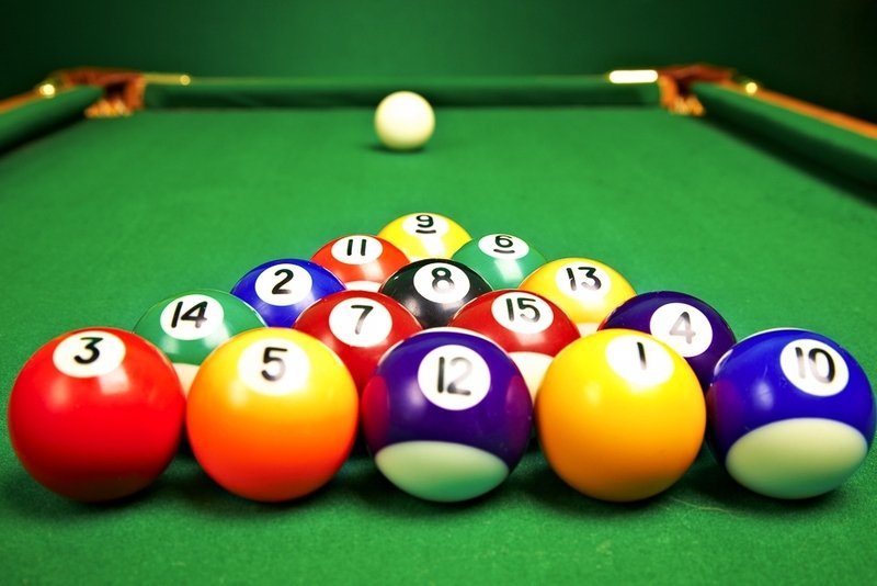 Азиатка курит на бильярдном столе