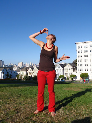 Azjatka strzela soczkami przed domem