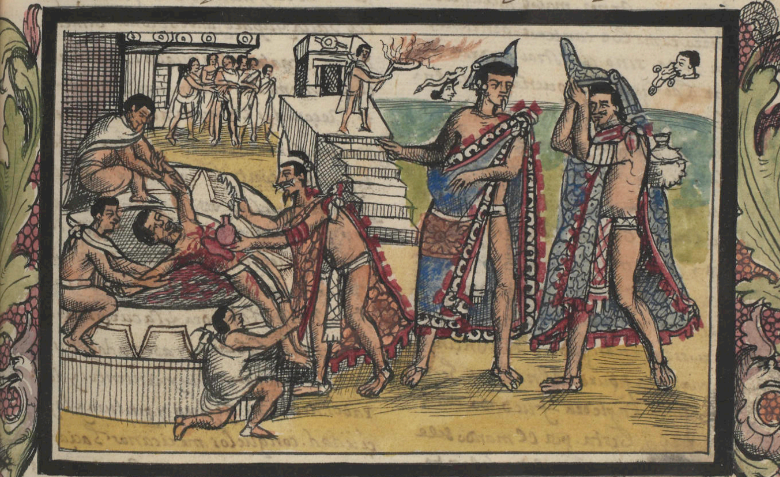 Интересное описание жрецов даёт один из испанских летописцев, рассказывая о первом посещении храмового комплекса Теночтитлана: