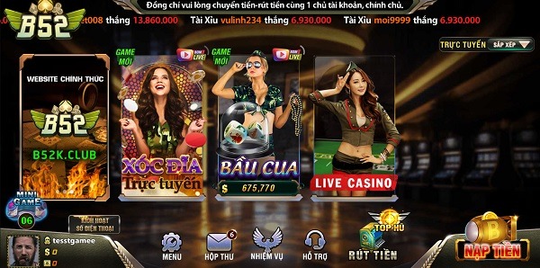 B52 Club là một trong những sân chơi game bài được ưa thích tại thị trường game online hiện nay. Sân chơi B52 Club đánh bại các đối thủ khác với sự đa dạng của các trò chơi hấp dẫn và độ tin cậy mà nó mang lại.