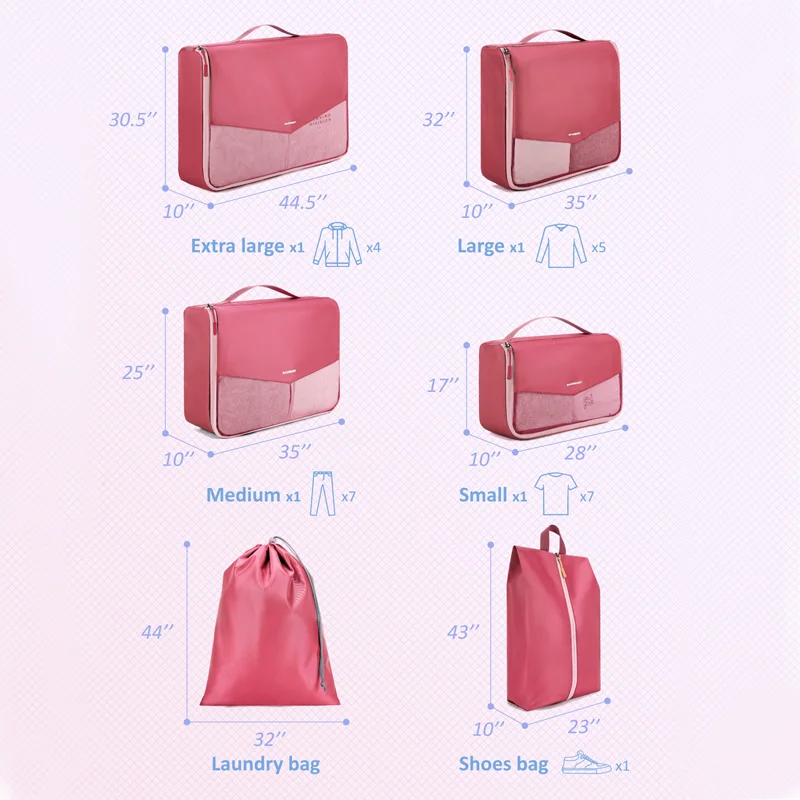 BAGSMART 6 Set Packing Cubes for Suitcase,Lightweight Essentials with Laundry Bag, Durable Luggage Suitcase Organizer Bag Set wi - Купить с бесплатной доставкой