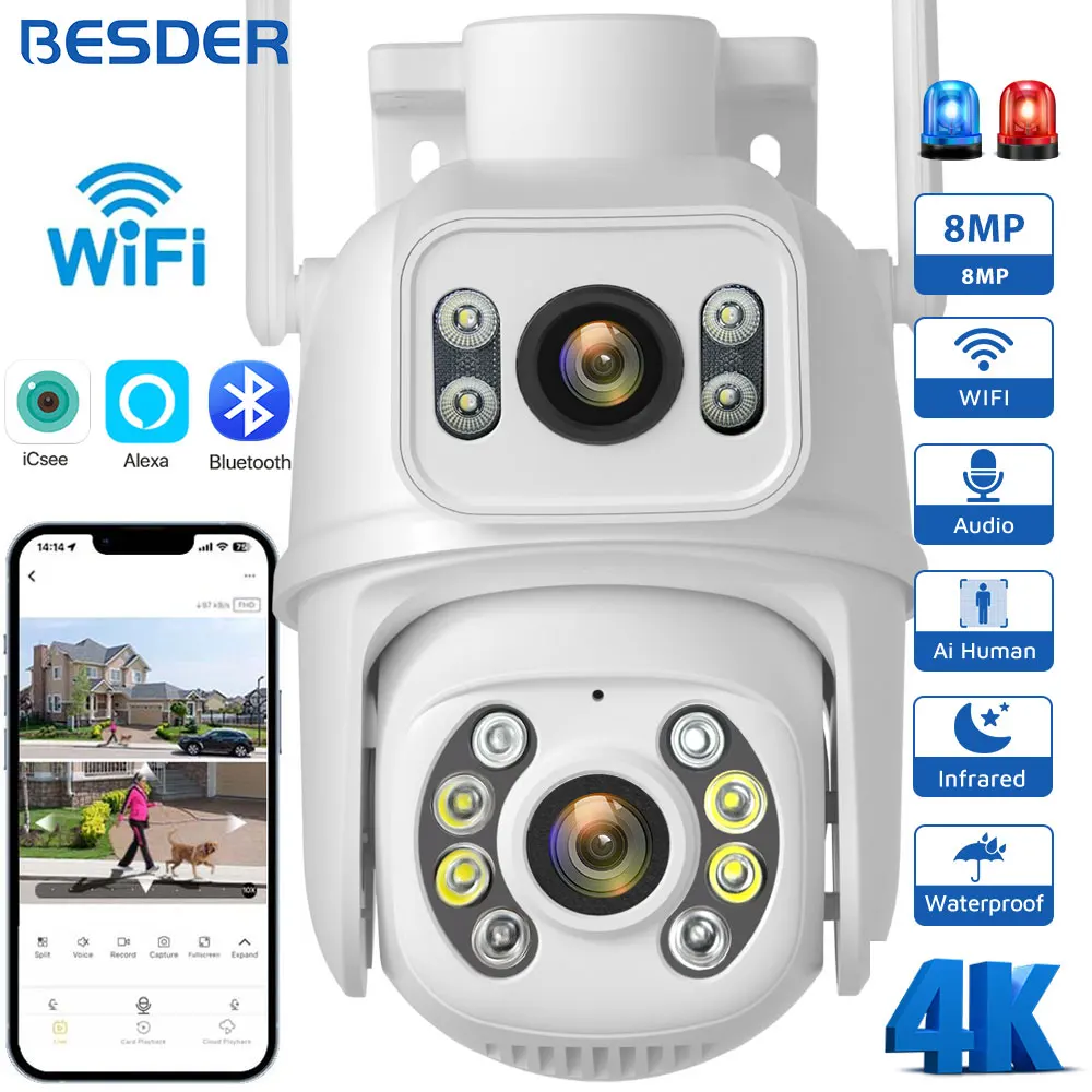 lHcKxbniHere you can buy BESDER 8MP WiFi Camera PTZ Dual Screens Auto Tracking Night Vision CCTV Surveillance Camera Outdoor 4MP Security IP Camera icsee with free delivery to your post office.