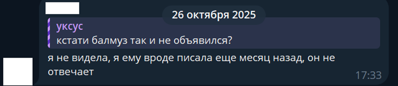 Наверное, нам нужно было запомнить опыт работы с Балмузом, еще в 2021-2022 году он покинул команду из за учёбы, благо у нас была Санхед. А теперь у него внезапные форсмажоры, только в этот раз он не потрудился уведомить о том, что он покидает проект, просто убежал