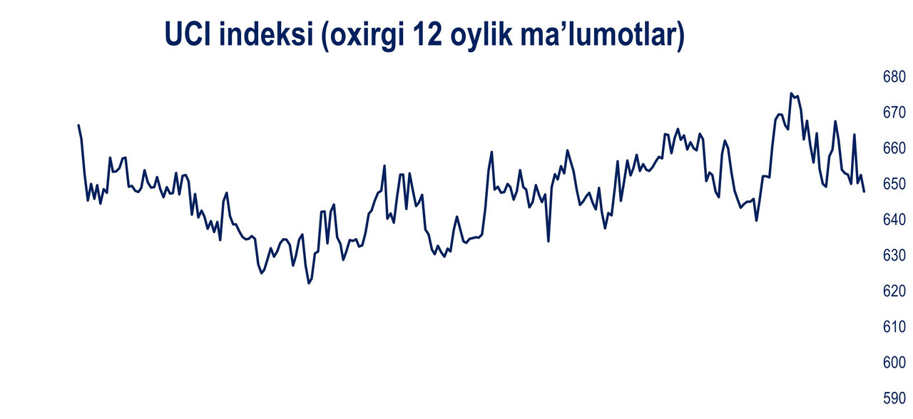UCI indeksi 647,8 band darajasida yopilib, 11,8 bandga yoki 1,8%ga pasaydi