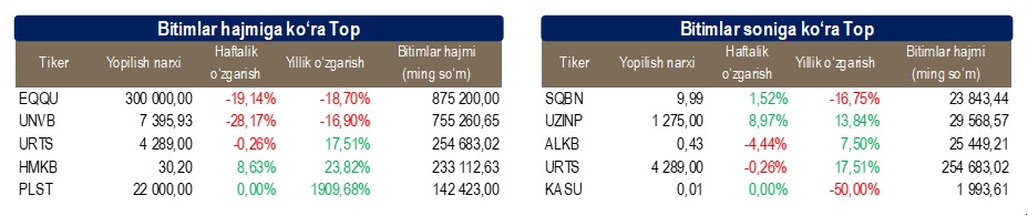 Birjaviy bitimlarning barcha maydonchalardagi umumiy soni — 10 083 (+55,41 avvalgi haftaga nisbatan)