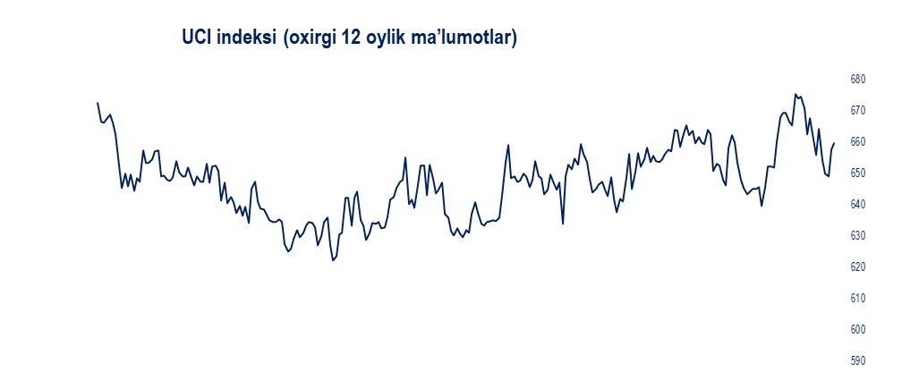 UCI indeksi 659,57 band darajasida yopilib, 4,6 bandga yoki 0,7%ga pasaydi