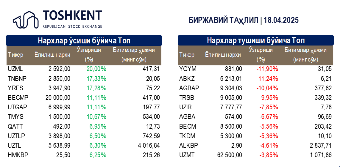 БИРЖАВИЙ ТАҲЛИЛ | 18.04.2025