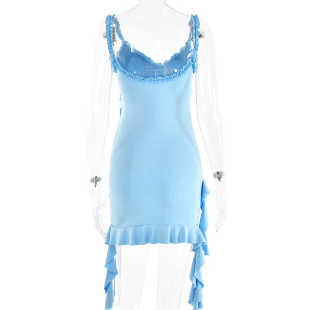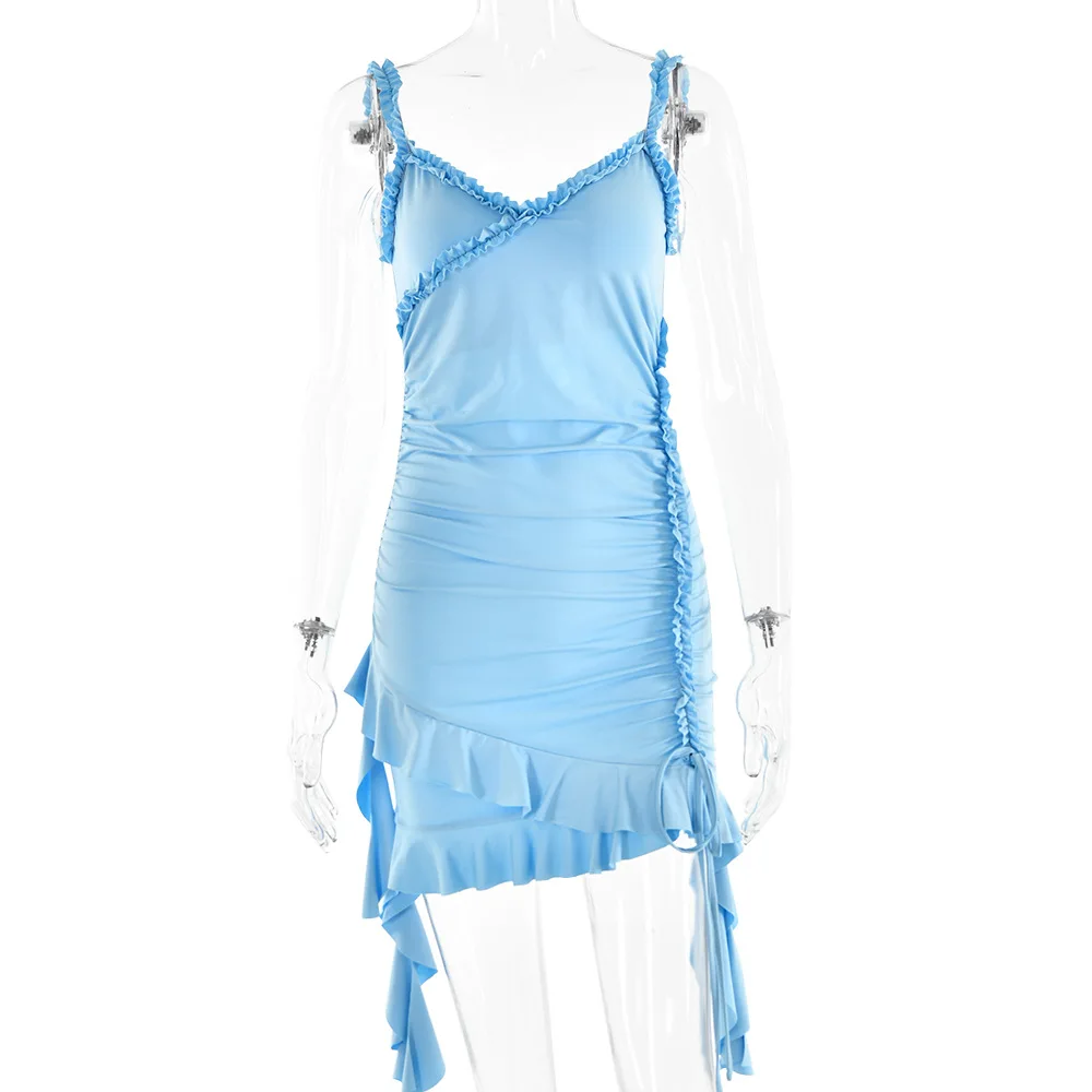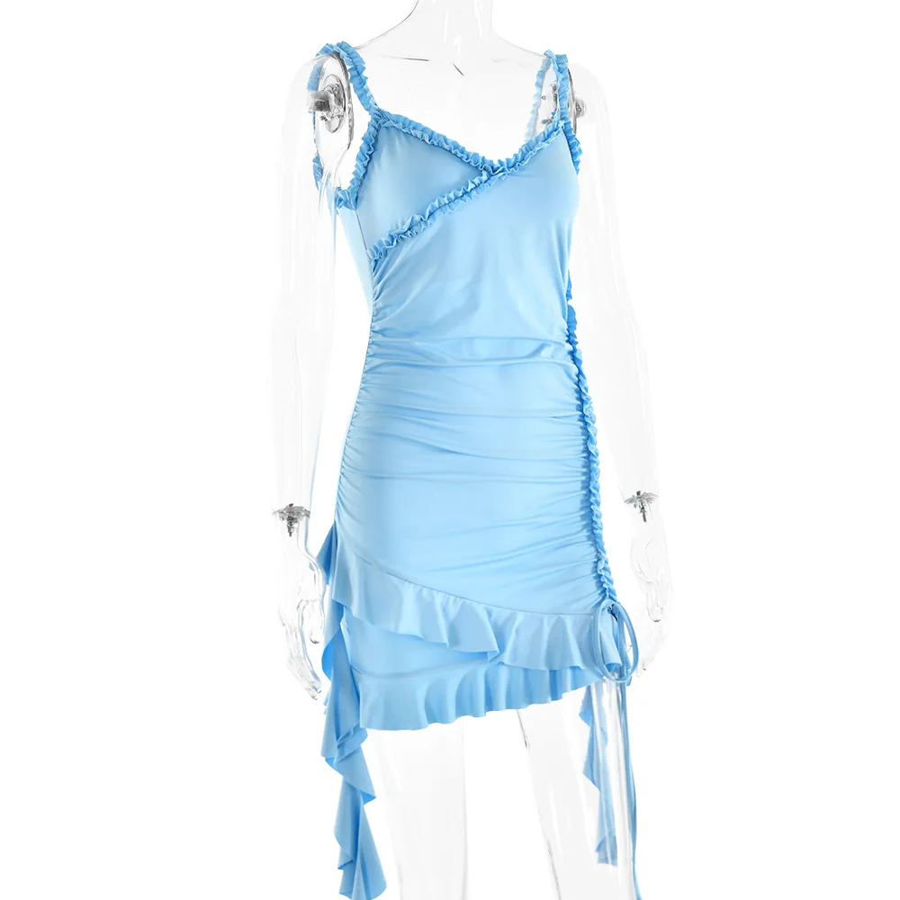 VYzbmSVgsZHere you can buy BKLD New Solid Color Spaghetti Strap Dress Sexy Y2k Clothes Women Irregular Ruffled Drawstring Ruched Lace-Up Short Dresses with free delivery to your post office.