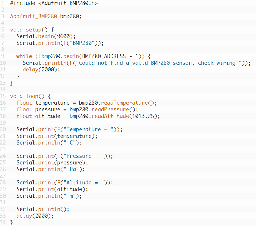 Для работы с модулем используется библиотека Adafruit BMP280. При установке нужно согласиться установить Adafruit Sensor