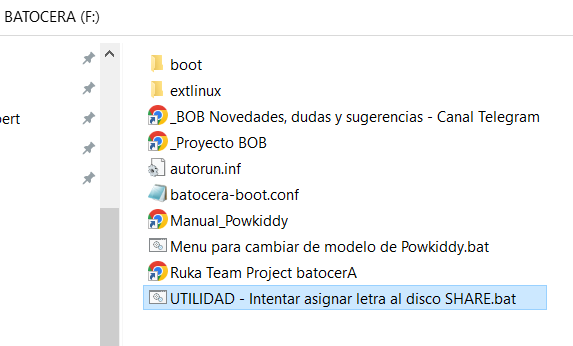 Solo se puede ver en windows 10/11. Si no te aparece ves al disco BATOCERA y haz doble clic en "UTILIDAD - Intentar asignar letra al disco SHARE.bat". Cuando acabes deberías tener un disco más accesible "SHARE".