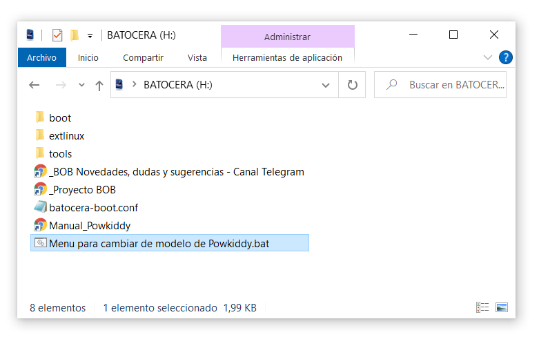 Hay 3 modelos de Powkiddy, por defecto la BOB viene para la A12 rev C. Para cambiar de modelo mete la microSD en el ordenador y haz doble clic en "Menu para cambiar de modelo de Powkiddy"