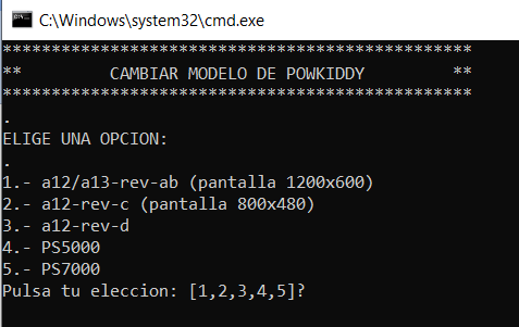 Utiliza el menú para elegir modelo de powkiddy (ver más atrás). No pasa nada si no aciertas, puedes volver. Ojo apaga bien la Powkiddy desde el menú.
