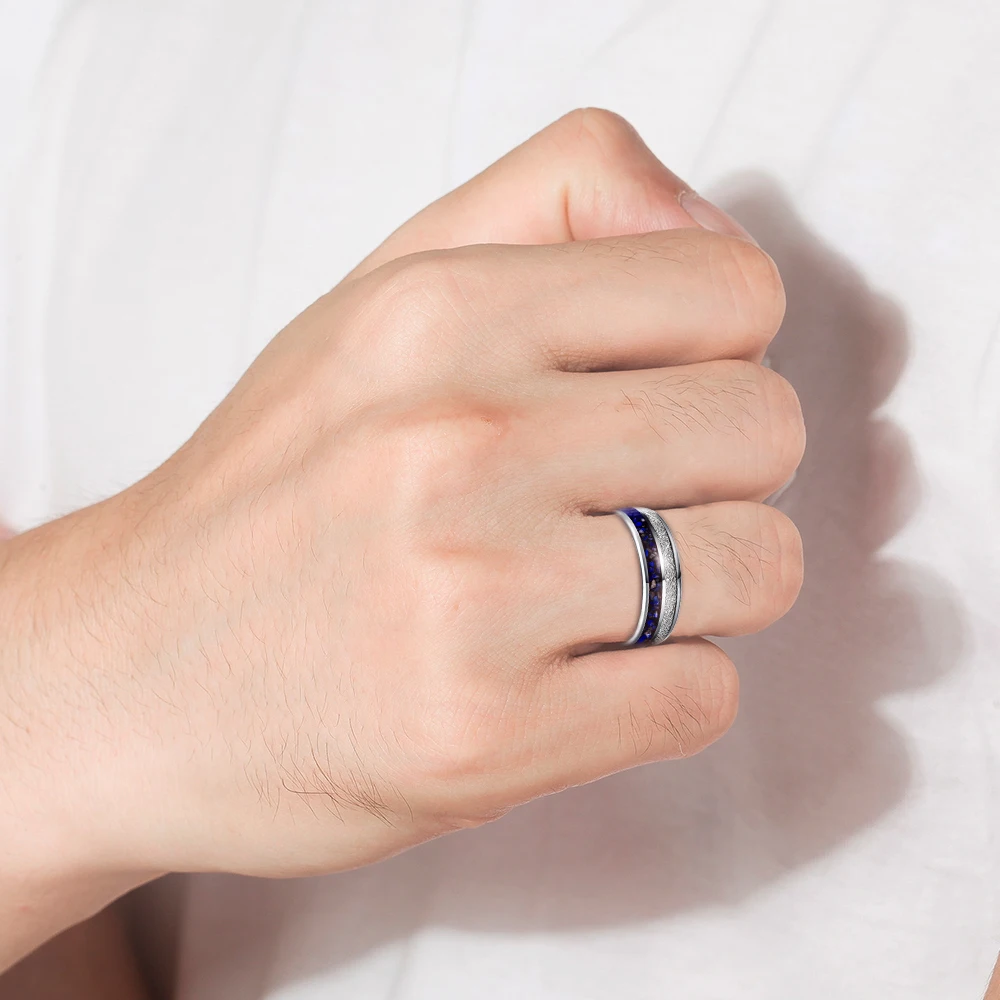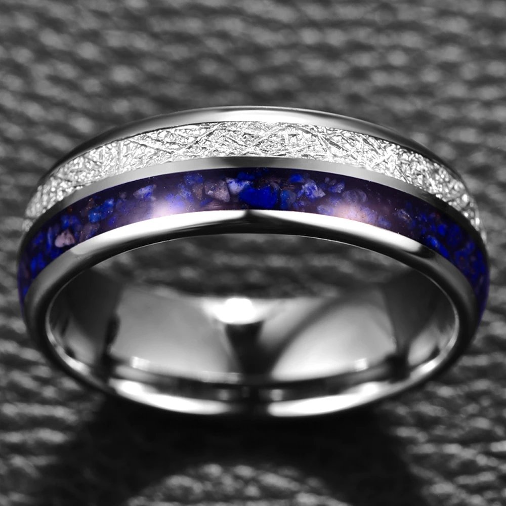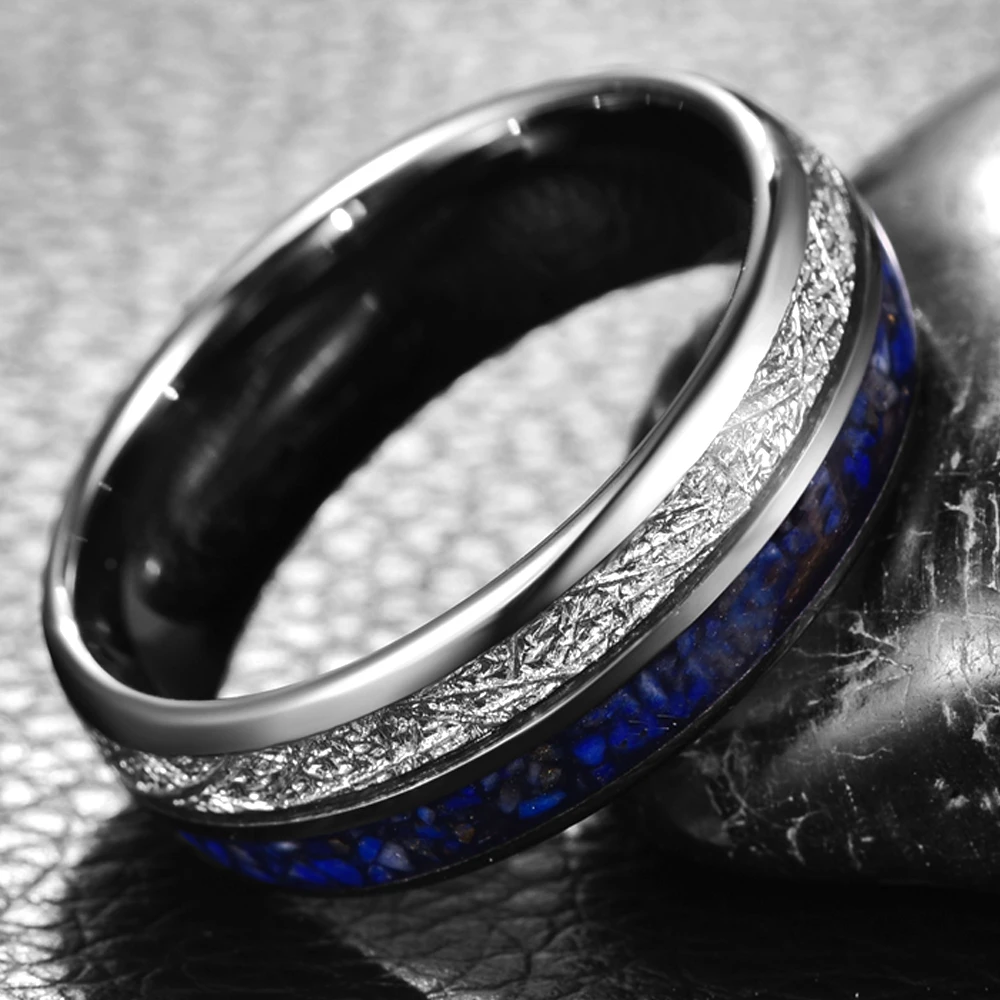 «BONLAVIE 8mm Lapis Lazuli Grains + Imitation Meteorite Steel Color Tungsten Steel Ring Wedding Rings for Men Best Gift Size 7-12» по лучшей цене на рынке! Всего за 13$ (1235рублей)